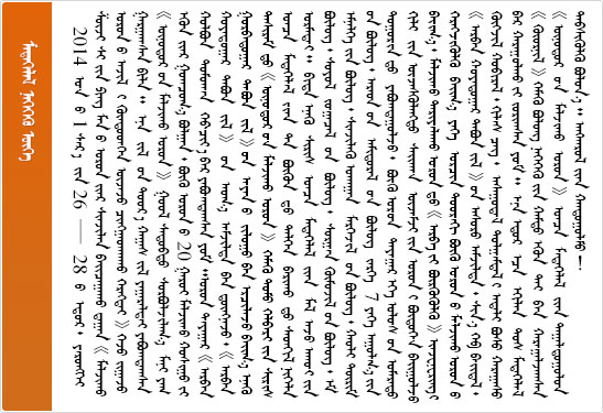 《中国蒙古语新闻网》版权所有 © 2008-2023 蒙ICP备10000005号 内蒙古日报社主办 内蒙古蒙科立蒙古文化股份有限公司技术支持 通信地址:呼和浩特市金桥开发区内蒙古日报社新闻大厦6楼 联系电话:0471—6635435 加入收藏